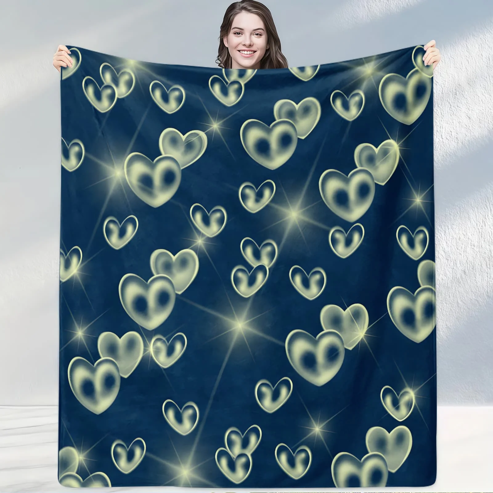 Coperta con Graffiti di Cuori Colorati Neri: Plaid Giocoso per Interni, con Motivi di Cuori Disegnati a Mano, Ideale per Arredamento Vivace e Trendy.
