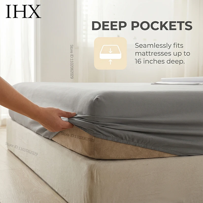 Lenzuolo con Angoli Elasticizzati IHX, Tinta Unita, Coprimaterasso Singolo, Matrimoniale, King, Queen, 140/150/160/180/200, Misura Personalizzabile