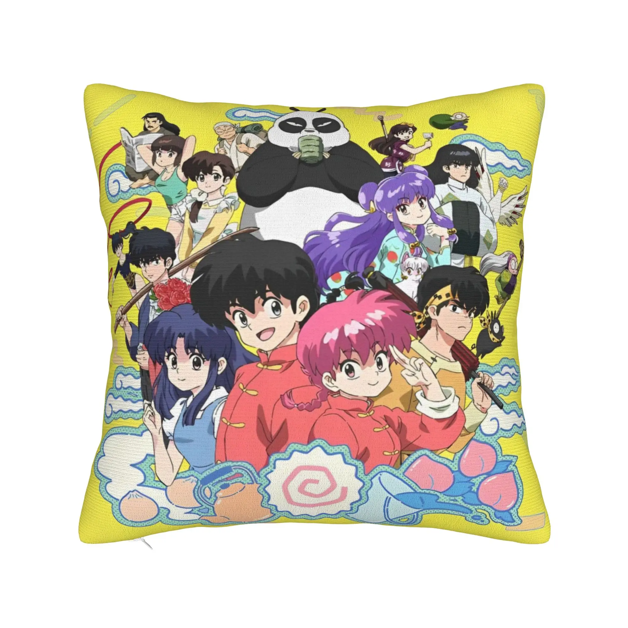 Manga Ranma 1⁄2 Federa per cuscino quadrata Avventura Commedia marziale Fodera per cuscino Novità Federa decorativa con cerniera per la casa 18 "x 18"