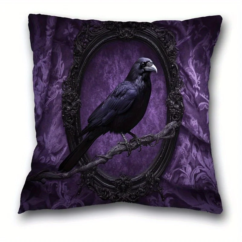 1 pezzo di federa in corvo nero gotico, cornice ornata vintage, sfondo viola, fodera per cuscino, divano, soggiorno, camera da letto