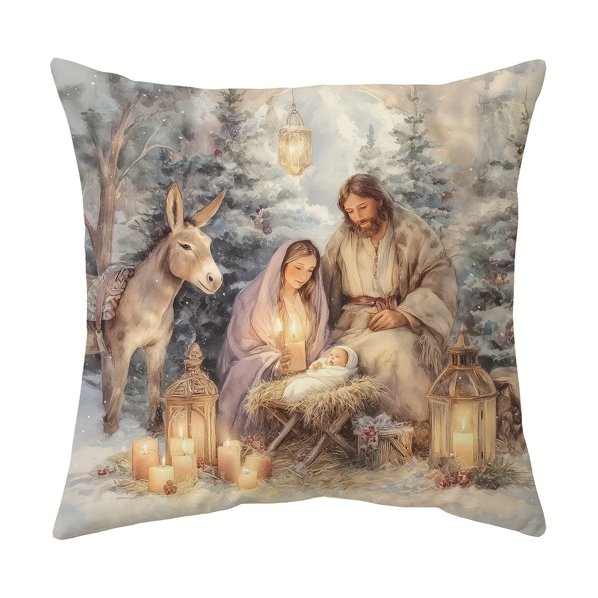 Federa per cuscino natalizio religioso 45x45 cm, design retrò natalizio, chiusura con cerniera, lavabile in lavatrice per soggiorno e camera da letto