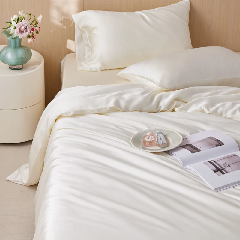 Copripiumino in Lyocell Effetto Seta, Morbido e Traspirante, Bianco Nuziale, Coperta Estiva, Misura Queen/King USA 168*228cm*1pz