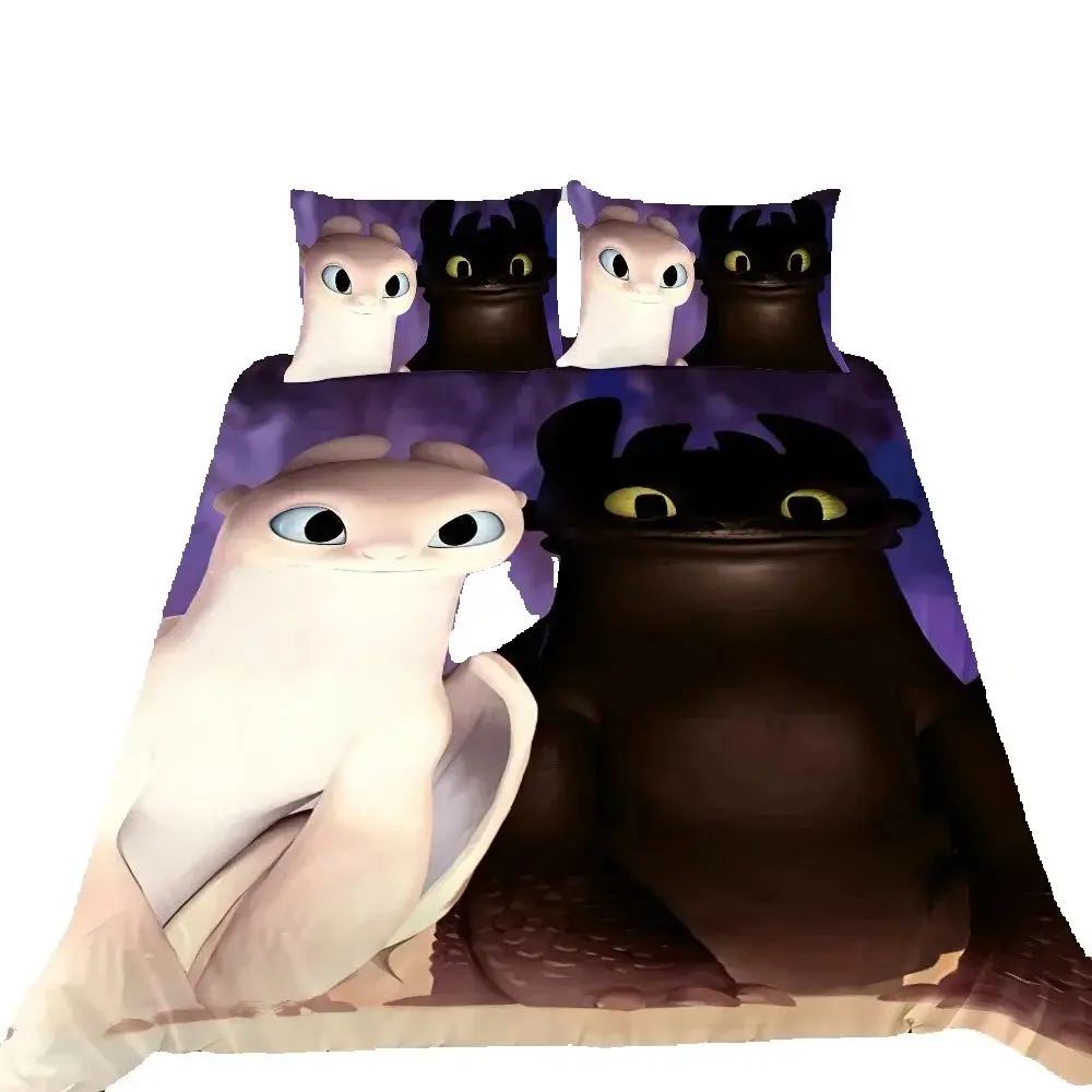 Divertente set di biancheria da letto con copripiumino e federa T-Toothless, decorazione per camera da letto per adulti, ragazzi e ragazze, regalo per bambini, singolo, doppio, grande formato