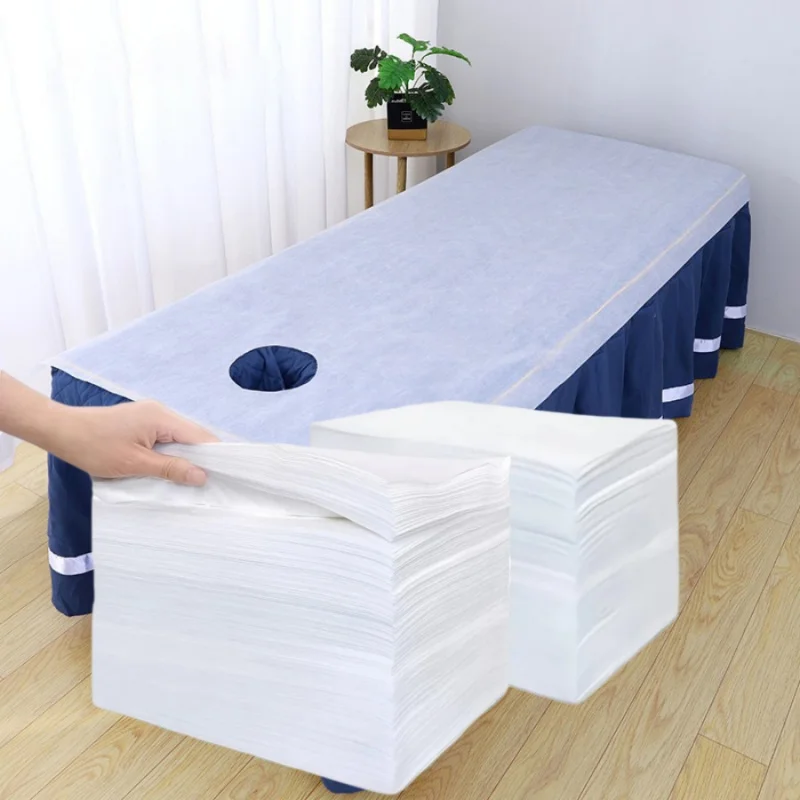 5 pz/pacco Lenzuolo usa e getta Salone di bellezza con foro per il viso Tappetino Asciugamano Massaggio Spa Lenzuolo Tappetino da picnic Bianco Leggero e traspirante