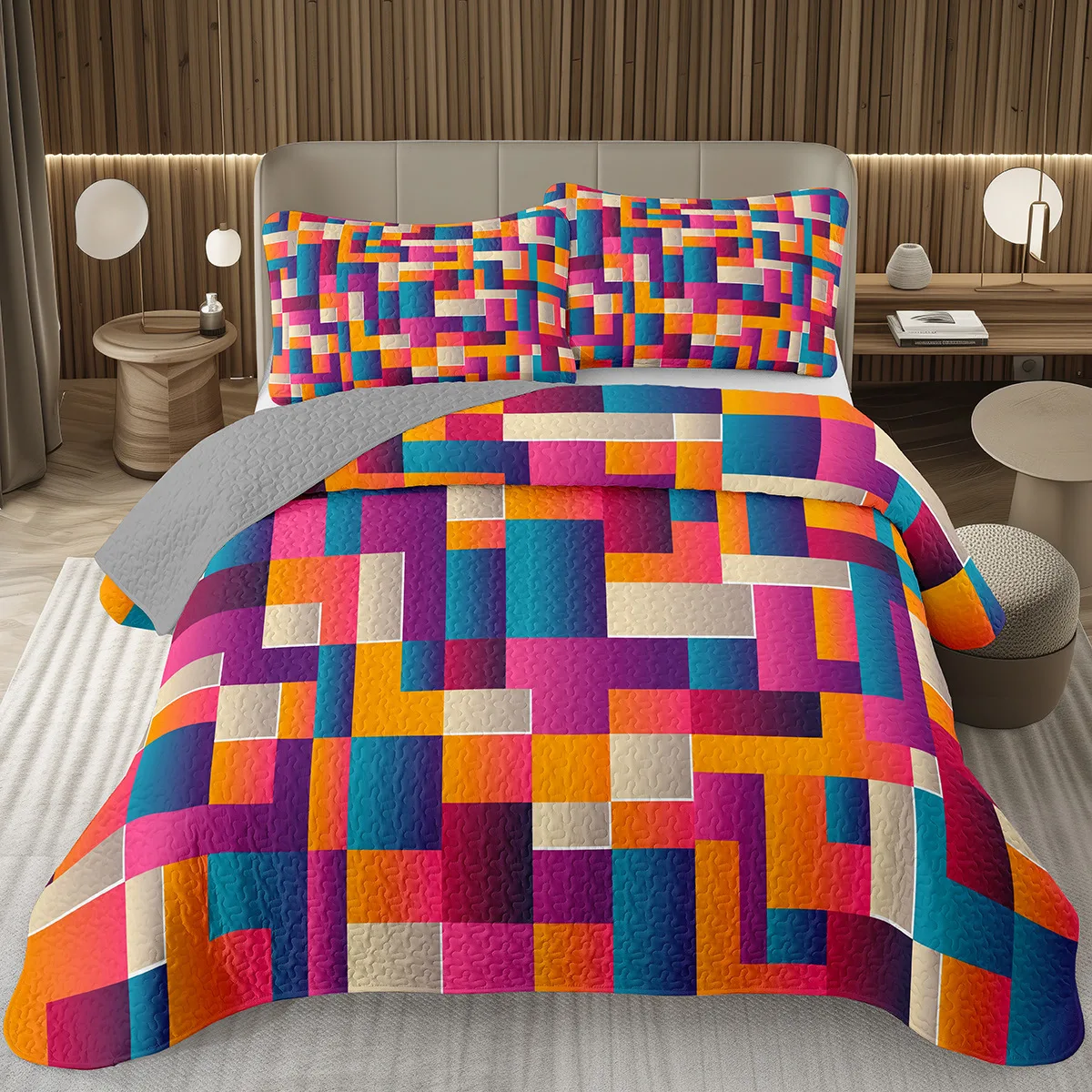 Copriletti con geometria astratta Queen/Full/Twin/King Set di biancheria da letto trapuntata reversibile con stampa di quadrati geometrici stereoscopici