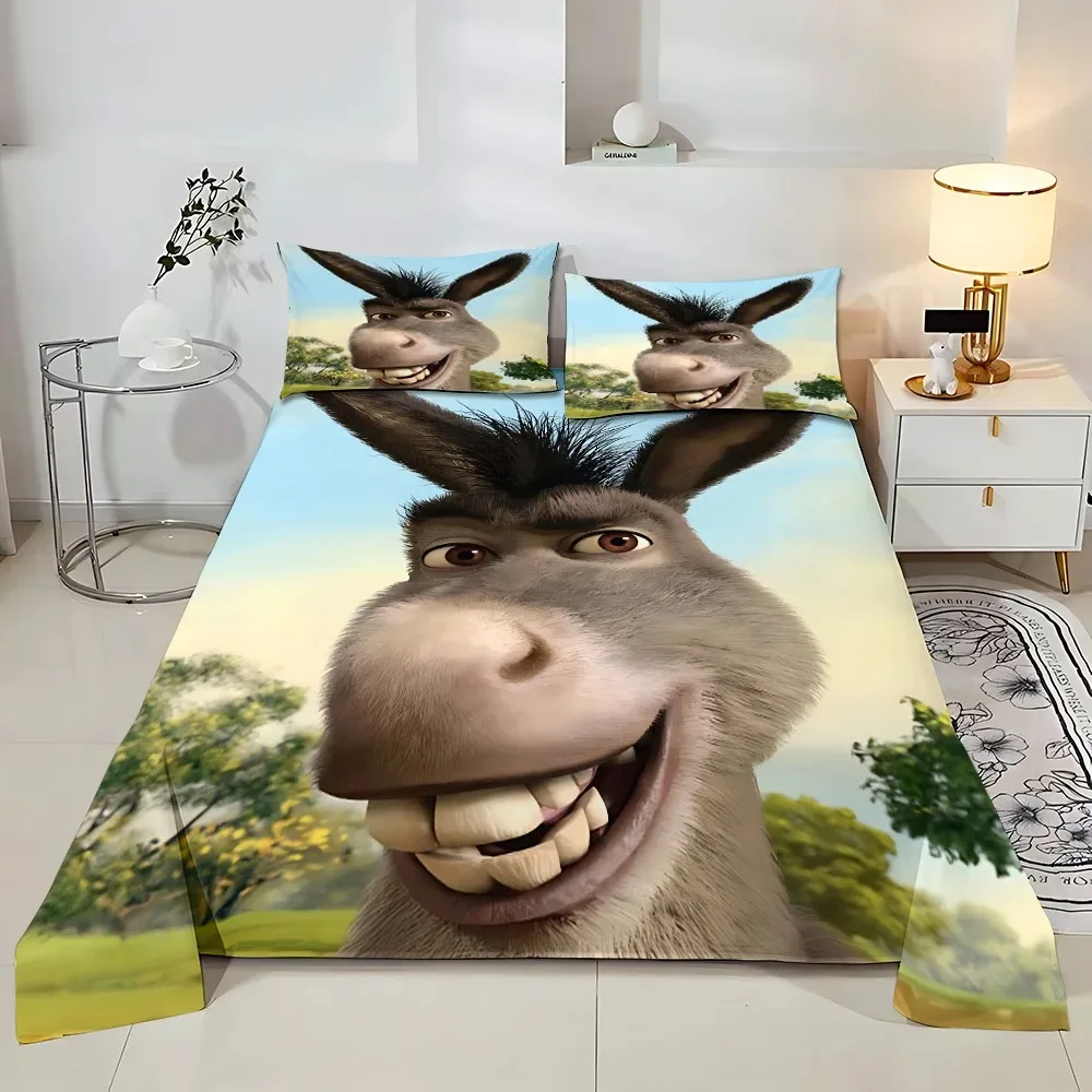 Set di Biancheria da Letto con Motivi Cartoon: Asino, Gatto con Stivali, Federe e Copripiumino per Adulti e Bambini, Decorazione Camera da Letto, Disponibile in Varie Misure