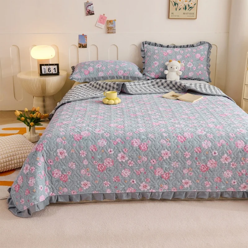 Copriletto trapuntato con volant Biancheria da letto Lenzuola ispessite Copriletto stampato Biancheria da letto per la casaкры eusло (La federa ha bisogno dell'ordine)