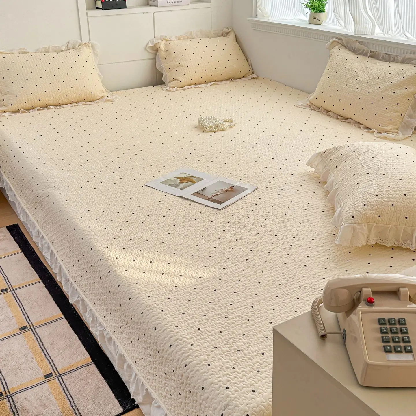Copriletto trapuntato in puro cotone Federa tinta unita Set di lenzuola ad angolo arrotondato europeo per coperte singole e doppie