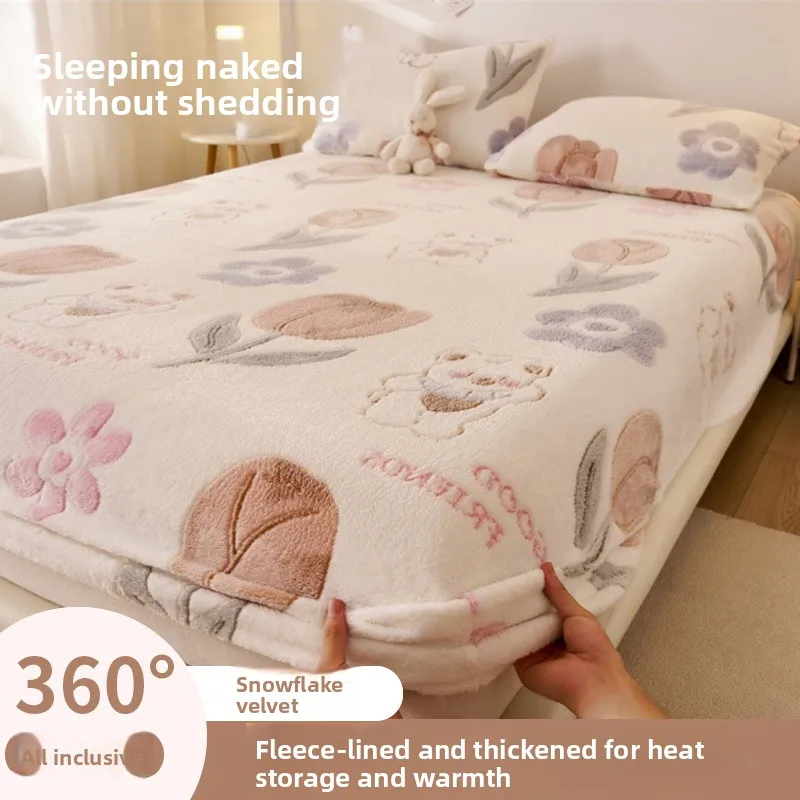 Copriletto singolo in velluto latte spesso con baldacchino, set di tre pezzi in pile corallo, protezione materasso e lenzuolo