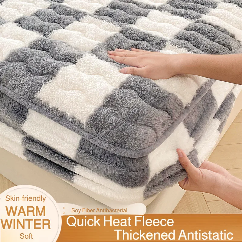Copri letto invernale in flanella di latte, serie a scacchiera, copriletto protettivo per materasso invernale addensato