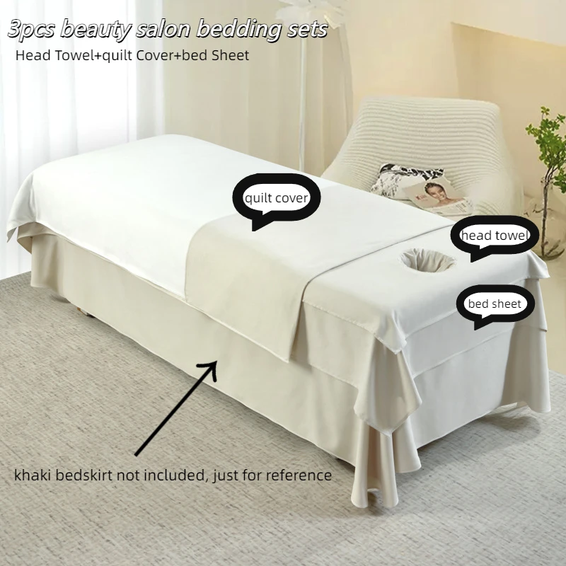 Set di 3 Pezzi per Lettino da Salone di Bellezza, Asciugamano per la Testa + Copripiumino + Lenzuolo, Lenzuola Delicate sulla Pelle per Salone Cosmetico, Spa e Massaggi
