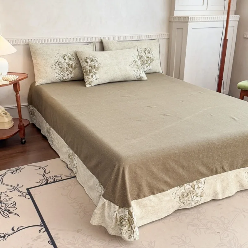 Lenzuola in lino stampato retrò a doppio filo, lenzuola lavate delicate sulla pelle, set di lenzuola in tre pezzi