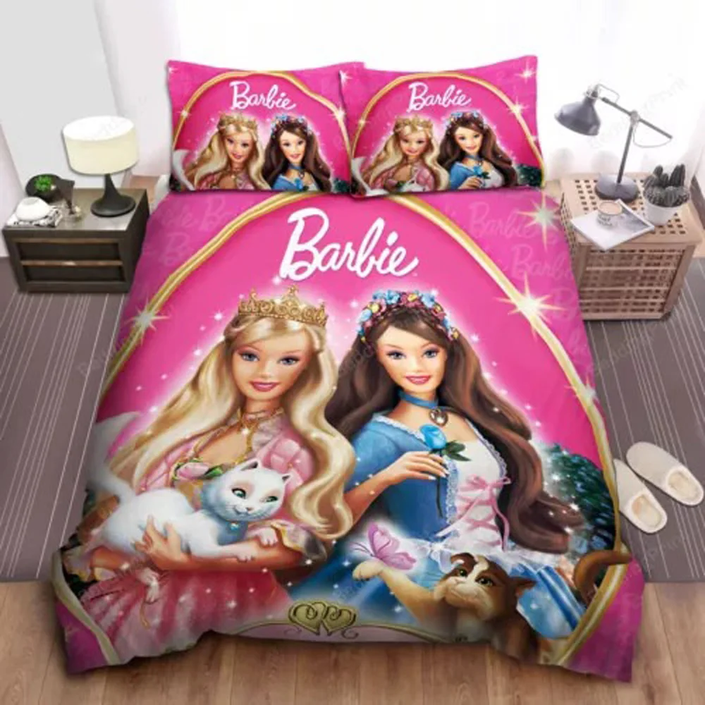 Simpatico set di biancheria da letto con bambola B-Barbies rosa, copripiumino, federa, decorazione per camera da letto per adulti, ragazzi e ragazze, regalo per bambini, misura singola e doppia