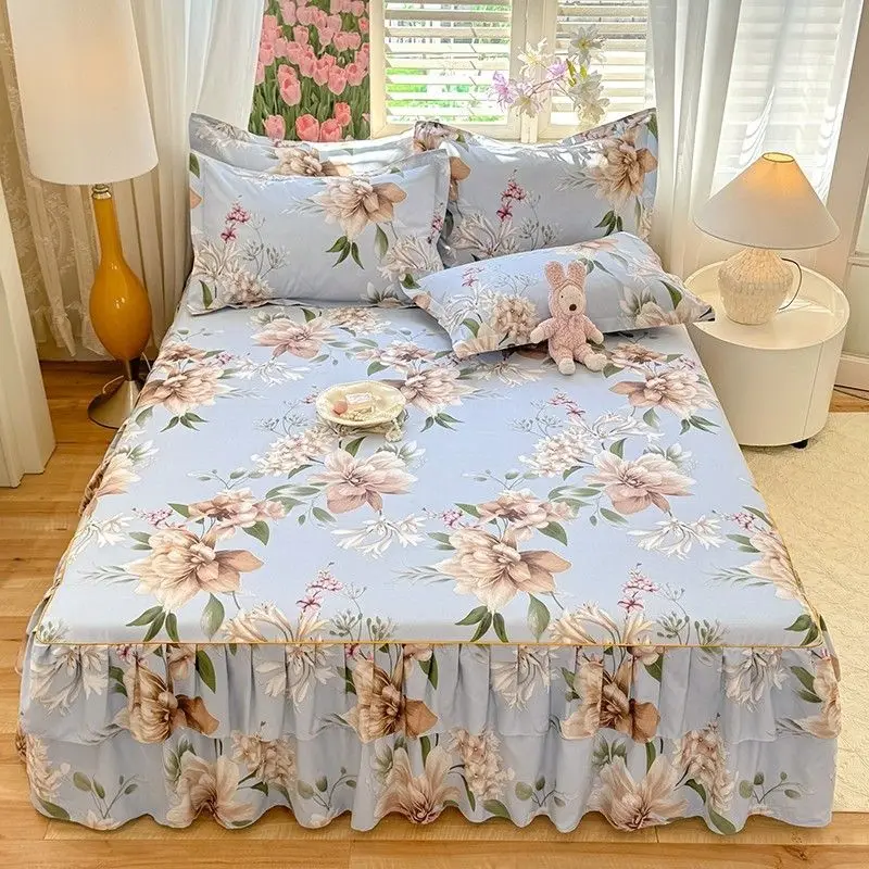Gonna da letto in morbido cotone Aloe Vera con orlo a doppio strato Copriletto con volant stile principessa floreale per l'arredamento della camera delle ragazze