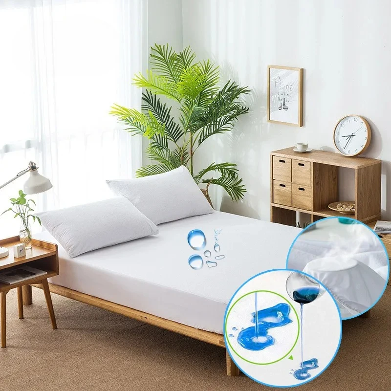 Coprimaterasso in spugna di cotone con lenzuolo piatto bianco Fodera protettiva per materasso in TPU impermeabile al 100% per copriletto antibatterico