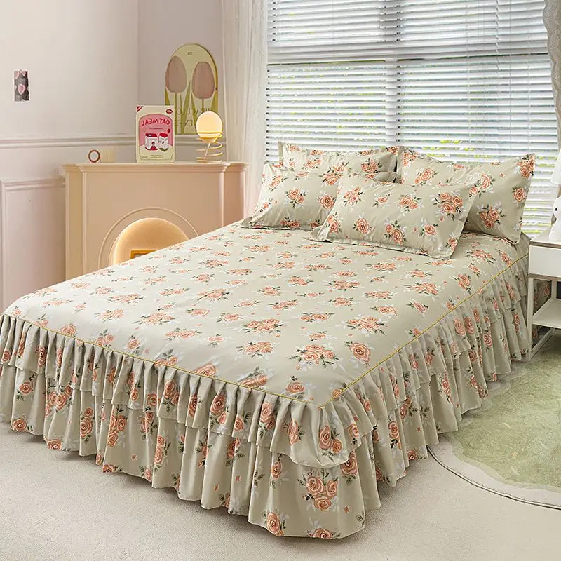 Gonna da letto in stile coreano Cartoon Coprimaterasso singolo Protezione antiscivolo Copriletto matrimoniale con gonna bilaterale