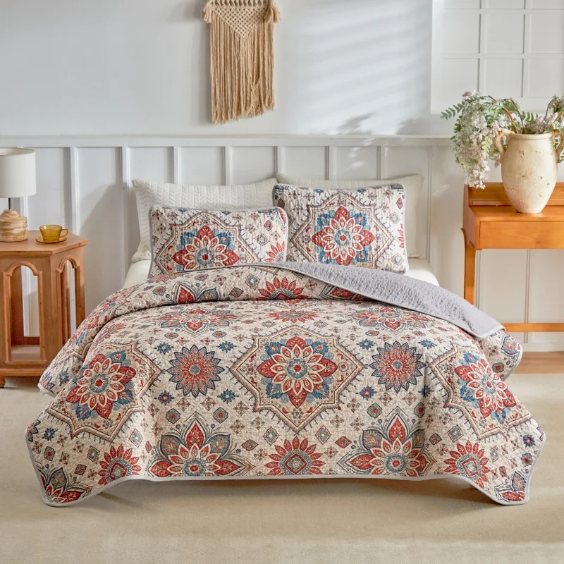 Set trapunta 3 pezzi copriletto trapuntato 100% cotone 2 pezzi fodere per cuscino leggero reversibile Chic copriletto stampato floreale
