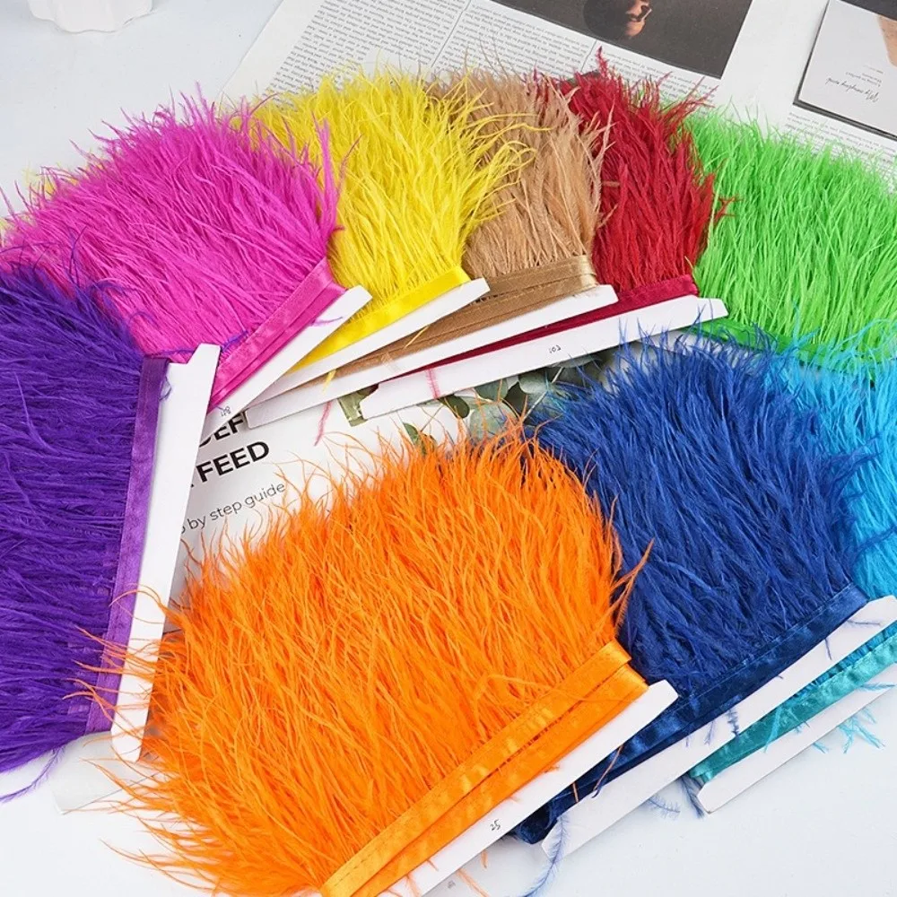 Piume di struzzo da 2M su nastro per cucire cucito nel vestito piume Decorative su frangia a nastro per i vestiti