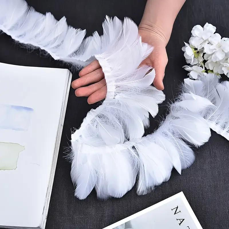 1 metro di piume d'oca naturali nappa nastro 8-10 cm per artigianato fai da te decorazione lampada abito da sposa camicia cucito all'ingrosso