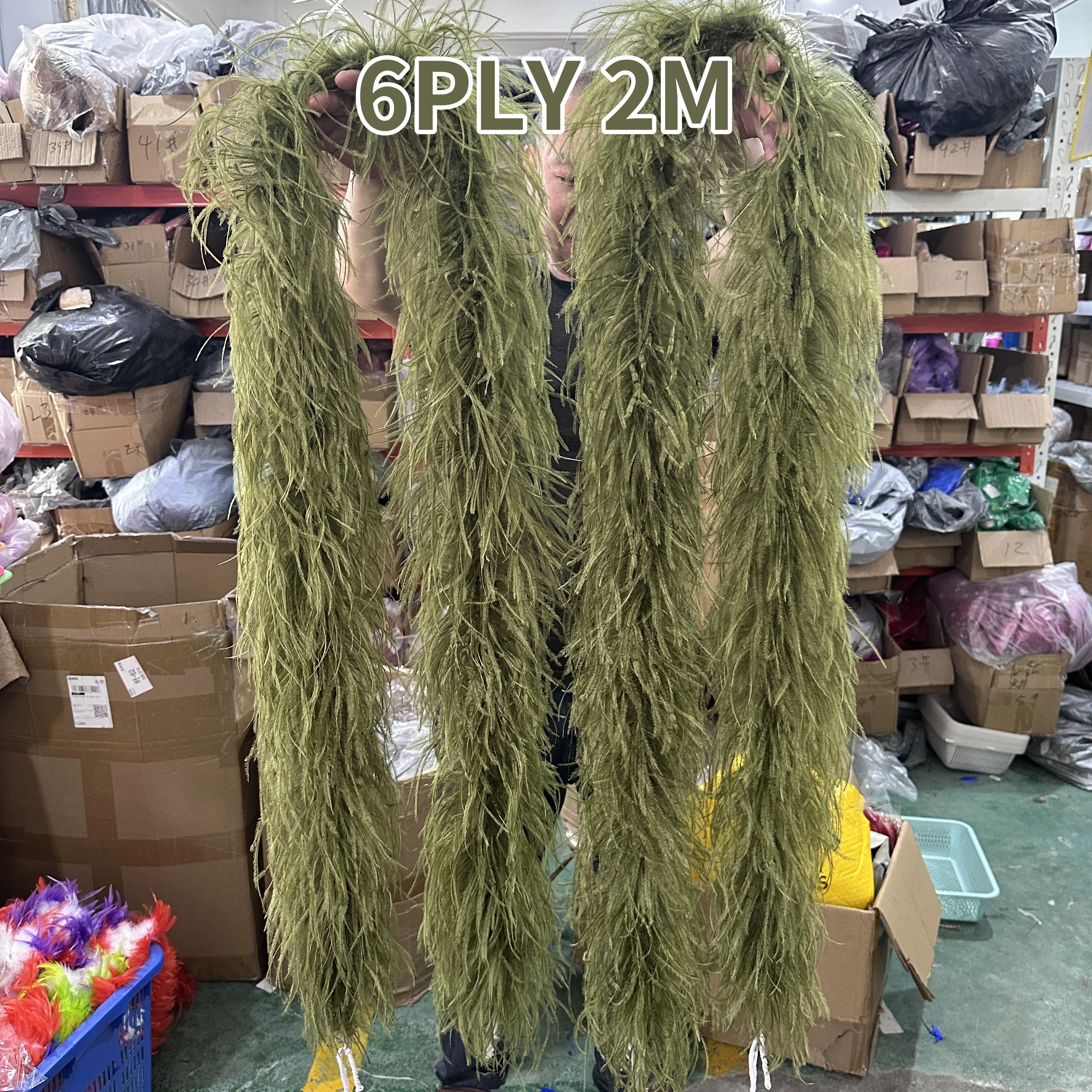 1/2/3/4/6 Strati Verde Militare Soffici Piume di struzzo Boa Trim 2M Scialle di Nozze Festival Costume Festa Abbigliamento Decorazione