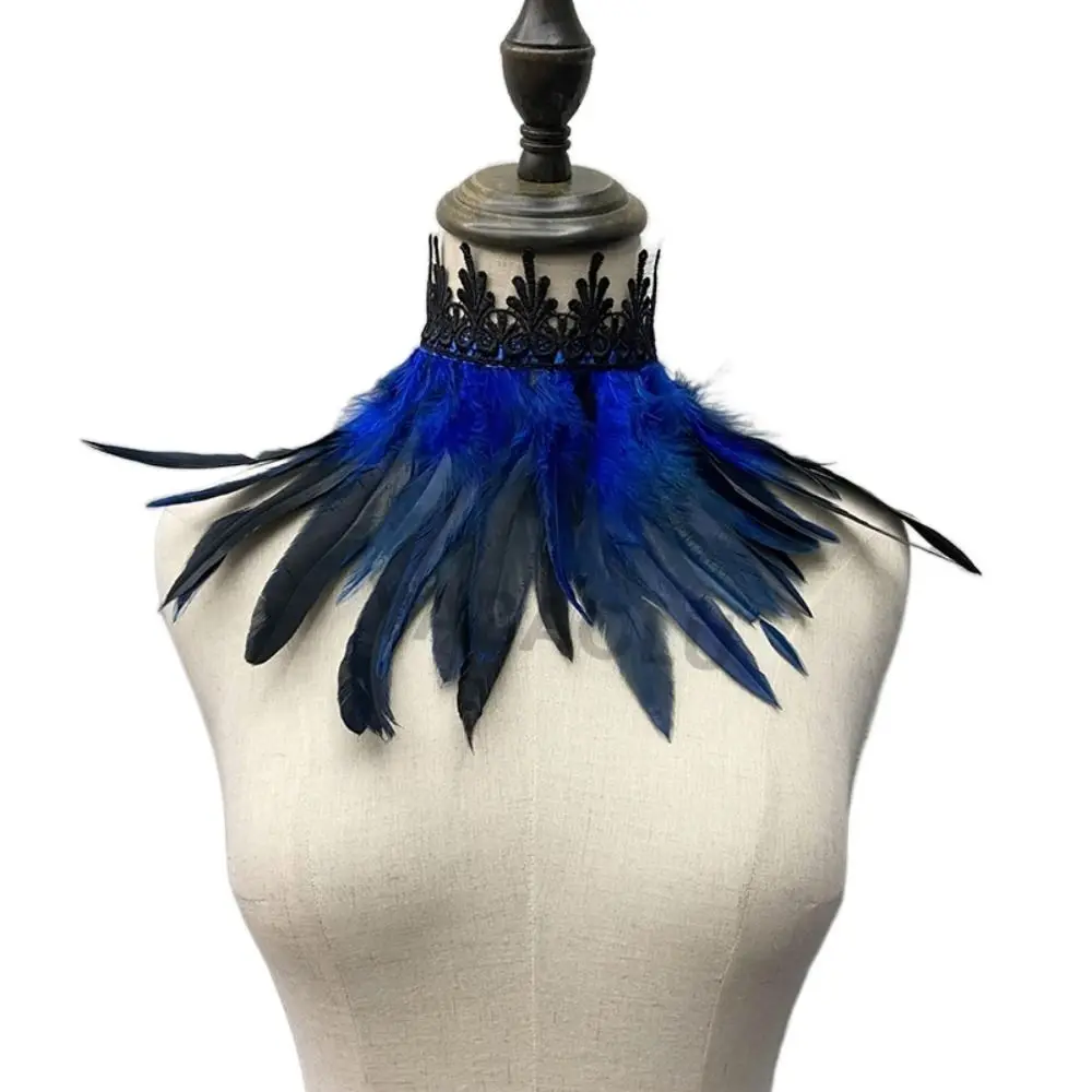 Gotico vittoriano spettacolo teatrale puntelli cosplay costume da festa colletto in pizzo collana collo avvolgente girocollo in piume