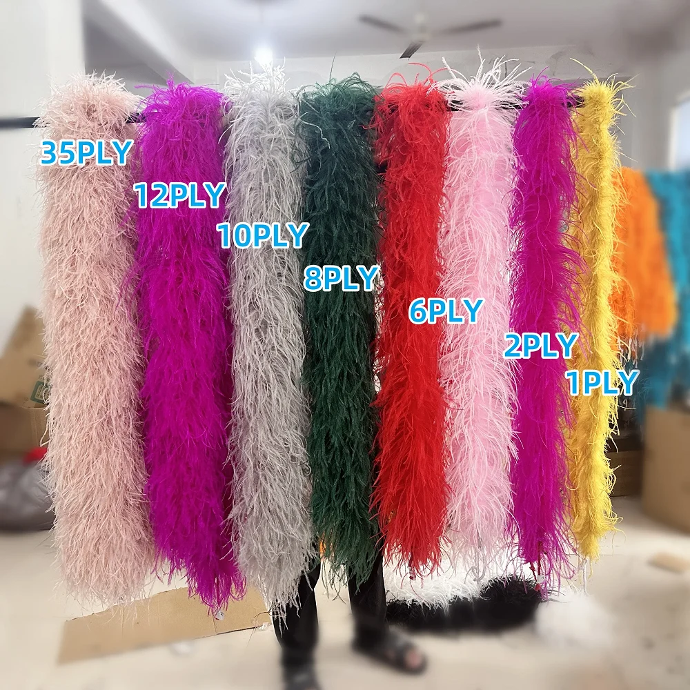 Da 1 a 10 strati soffici piume di struzzo tinte Boa scialle di piume di struzzo per la decorazione di accessori per feste di abiti da sposa 2 metri all'ingrosso