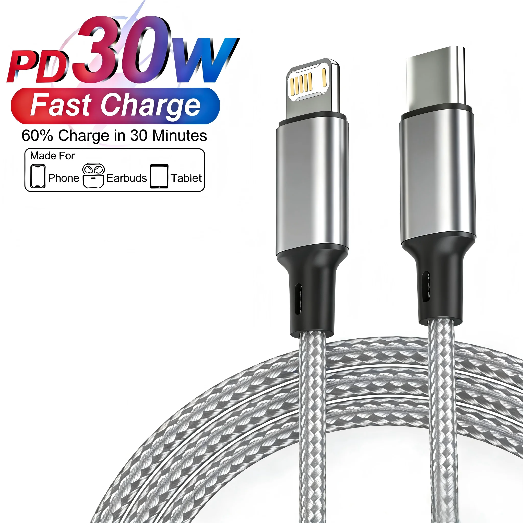 Cavo USB PD 30W per iPhone 14 13 12 11 Pro Max 7 8 14 Plus XS XR, Cavo USB C per Ricarica Rapida, Accessori per Trasferimento Dati