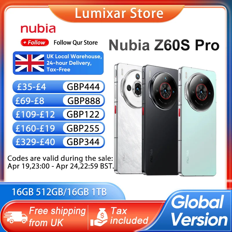 Nubia Z60S Pro Versione Globale Smartphone 5G Snapdragon 8 Gen 2 MyOS 14.0 Schermo AMOLED da 6,78 pollici 120Hz 50M+50M+8M 5100mAh NFC