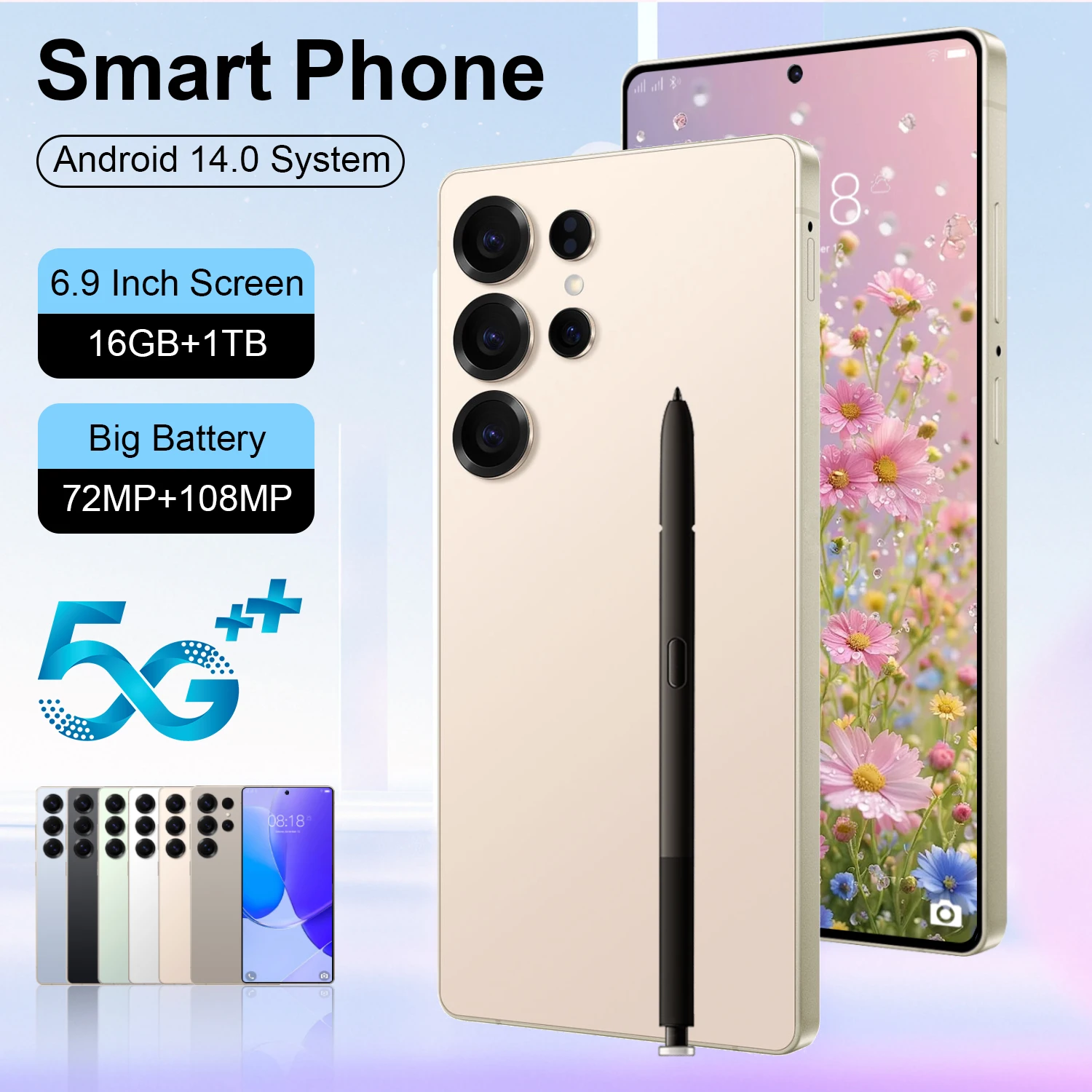 Nuovo 2026 5G Versione Globale Smart Phone 6.9 Pollici Android 14.0 16GB di RAM 1TB ROM 72 + 108MP Bluetooth WiFi Rete di Telefono