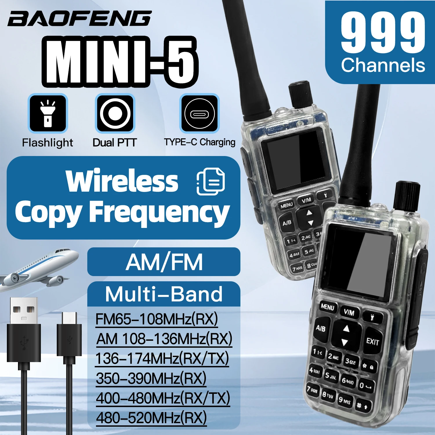 1/2 Pezzi Baofeng MINI-5 Dual Band Dual PTT Walkie Talkie 5RMINI VOX FM Radio Amatoriale Ricetrasmettitore Portatile con Ricarica Type-C Ricetrasmettitore Bidirezionale