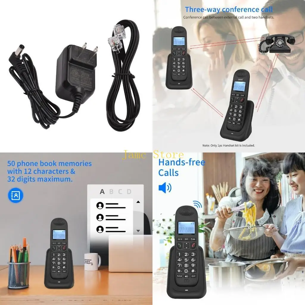 1 set telefono domestico telefono cordless a 2 ricevitori con ampio display LCD e bassa radiazione rapida con tecnologia DECT per le famiglie
