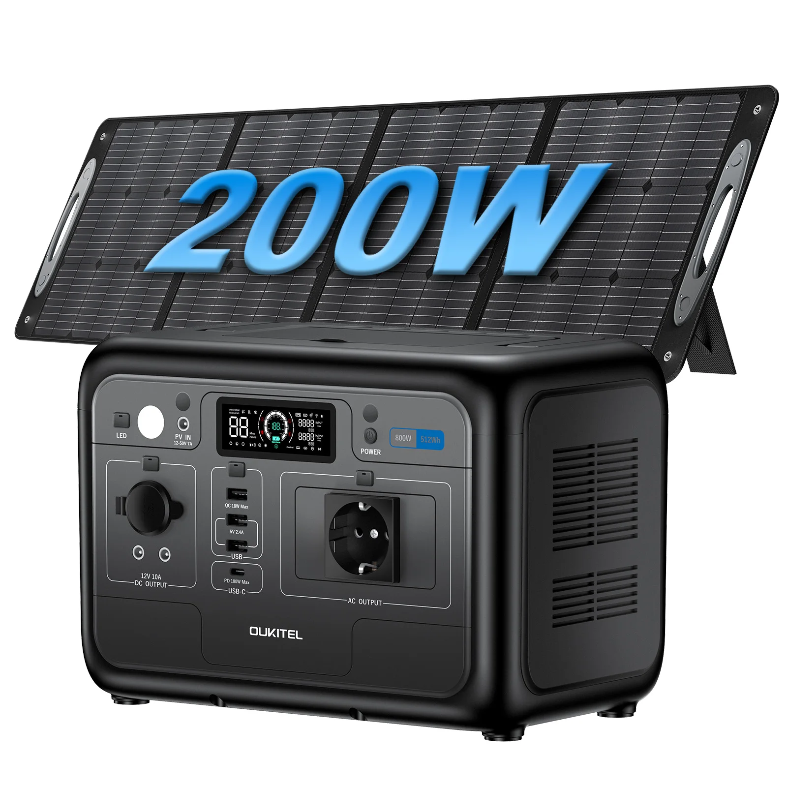 OUKITEL P800E Stazione di Alimentazione Portatile con Pannello Solare da 200W, Generatore Solare da 800W con Accumulo di Energia 512Wh LiFePO4 e Picco AC di 1600W