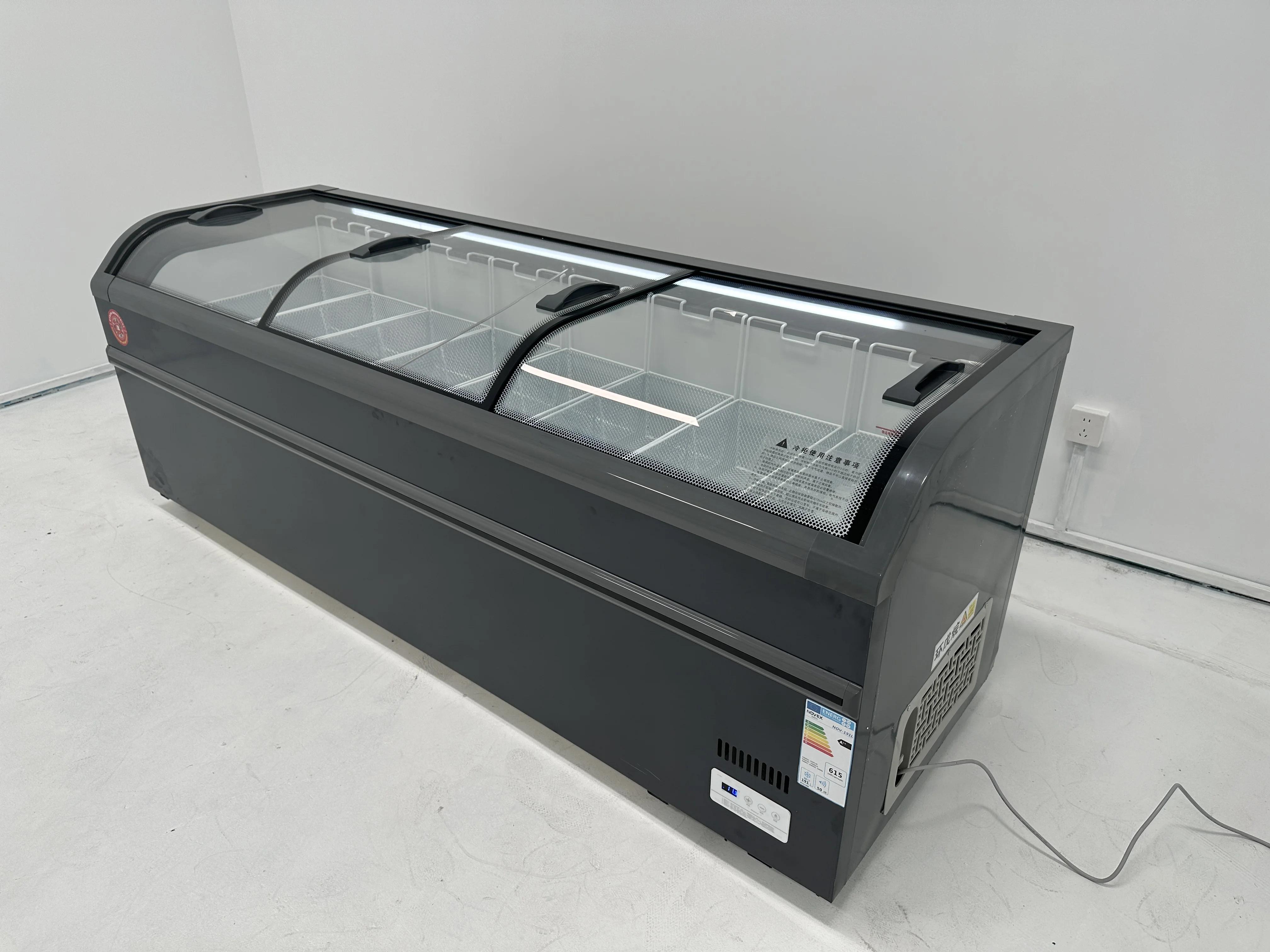 Congelatore a Isola con Vetro Curvo per Esposizione di Alimenti Surgelati all'Ingrosso per Ipermercati