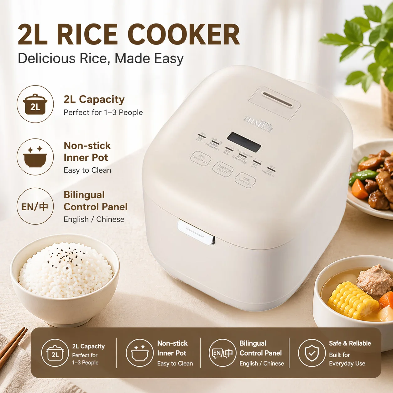APIXINTL220V 800W 2L 2-3 persone Multifunzione Completamente Automatico Smart Reserve Un Cuociriso