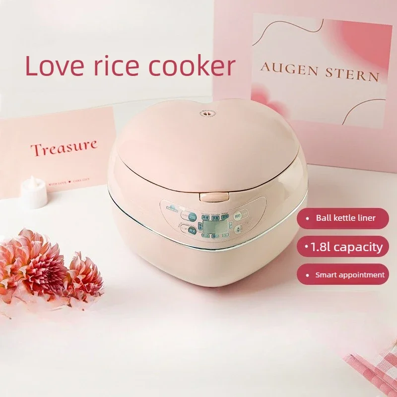 Cuociriso a Forma di Cuore Rosa da 1,8L 300W, Isolamento 9 Ore, Riscaldamento Stereo, Rivestimento in Lega di Alluminio, Programmazione Intelligente, per 1-4 Persone