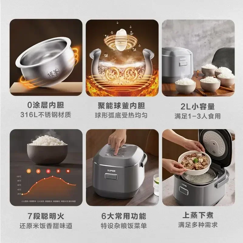 Fornello elettrico Fornello di riso domestico piccolo da 2 litri con rivestimento in acciaio inossidabile 316 – Sicuro, antiaderente, perfetto per 1-3 persone