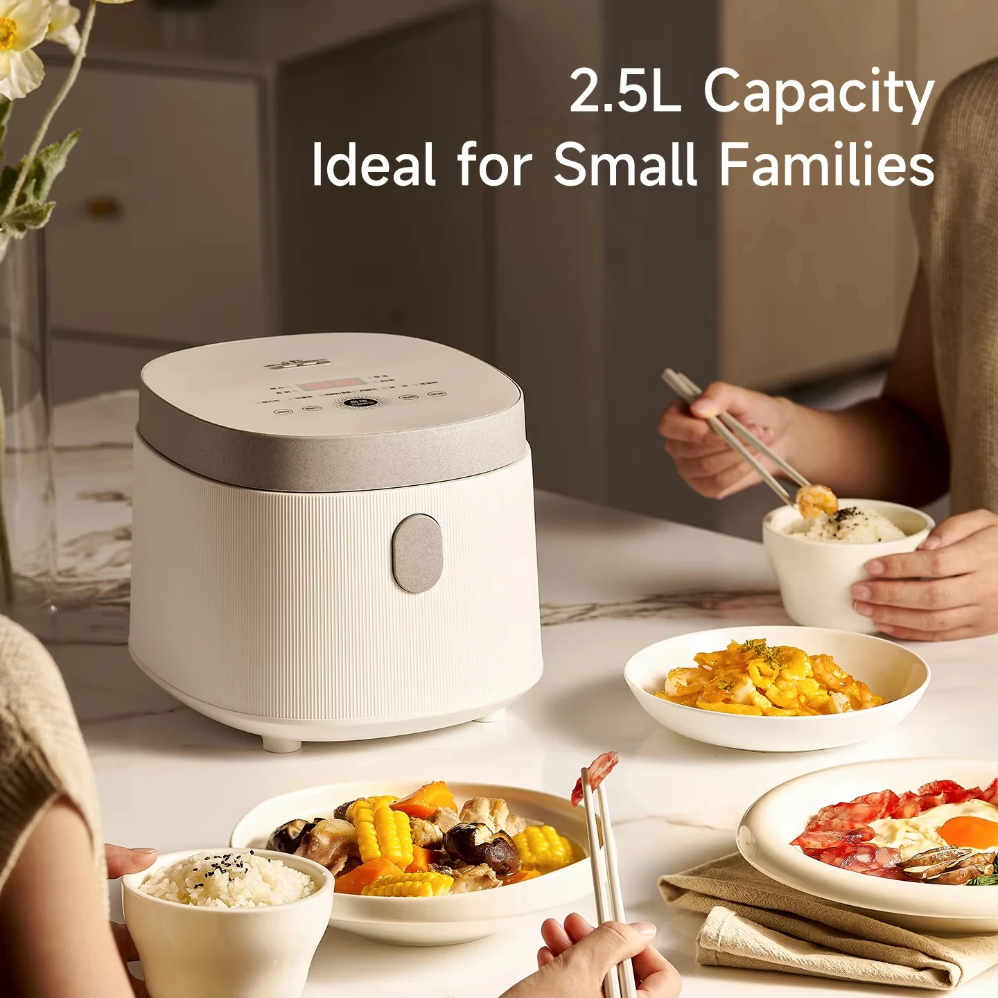 Cuociriso Elettrico da 2,5L con Rivestimento in Titanio per 2-3 Persone, Mini Multicooker Intelligente per Riso al Vapore, Macchina da Cucina 220V