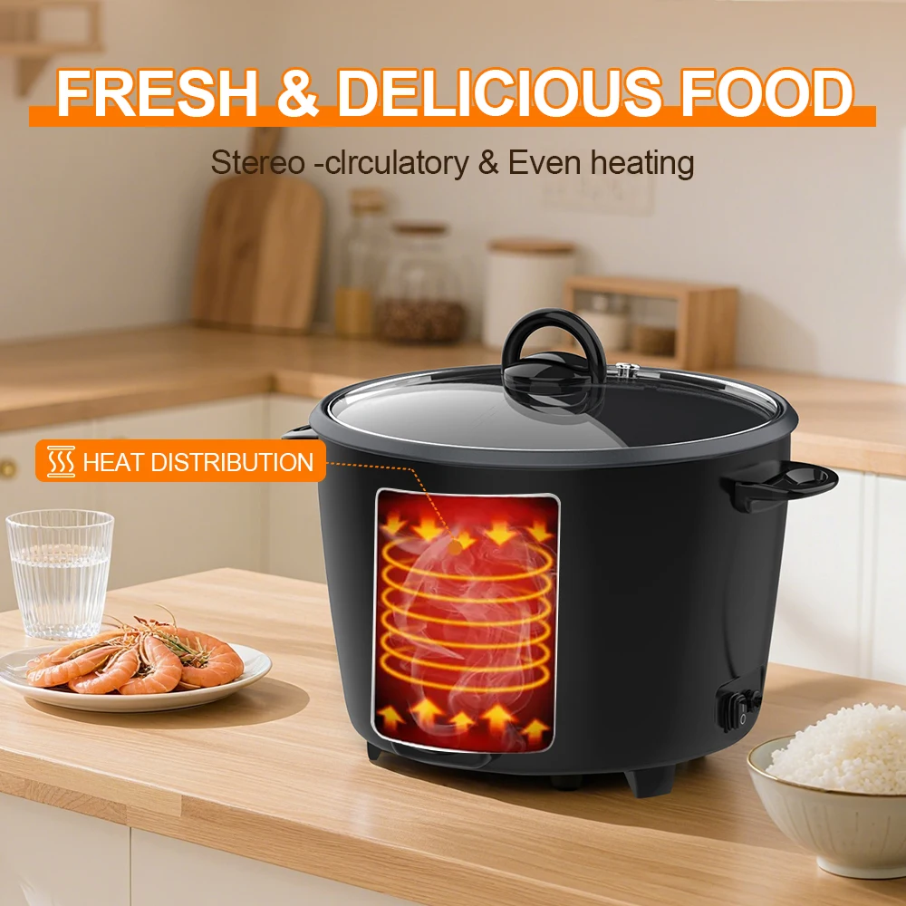 Elecpro Cuociriso Automatico Extra-Large da 2,6L, Capacità per 12-14 Persone (Riso Grezzo), Coperchio in Vetro, Riscaldamento Rapido ad Alta Potenza 900W, Unico