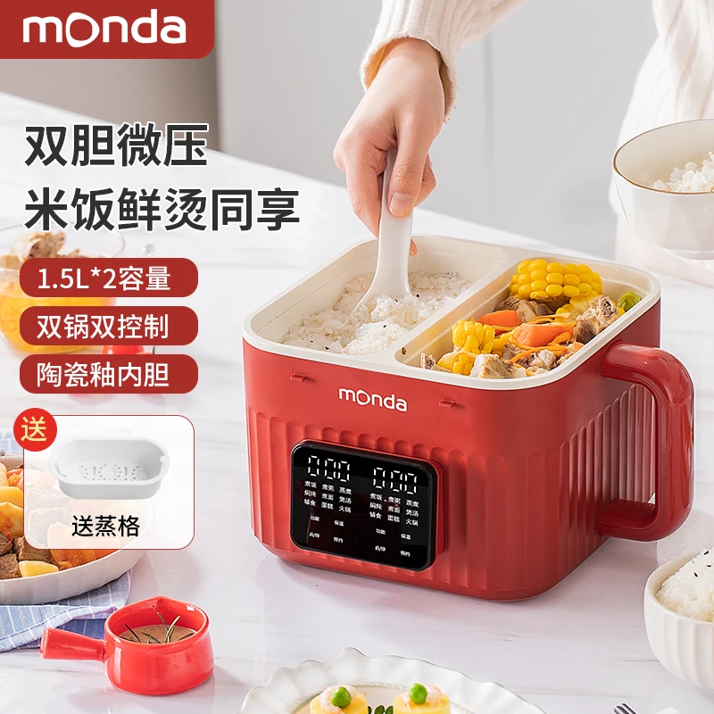 monda 220V 100W 3L Cuociriso a doppia pale cottura multifunzionale per zuppe micro-pressione di controllo indipendente all-in-one