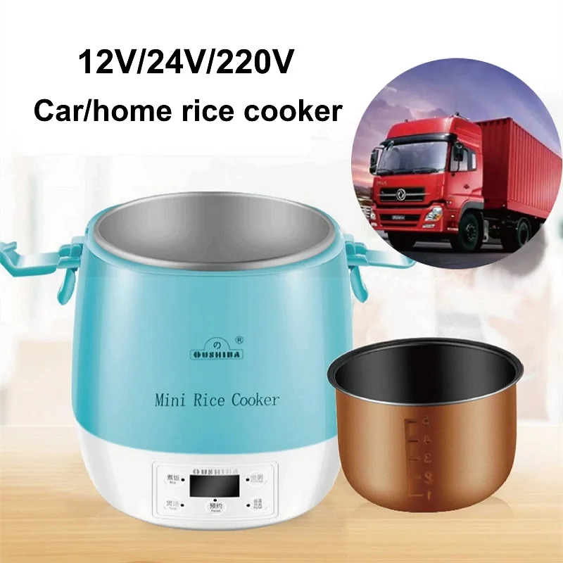 12V/24V/220V Auto Fornello di Riso Casa Antiaderente Fornello di Riso Prenotazione Riscaldatore di Cibo Camion Portatile Tenere Al Caldo Fornello Elettrico 1.6L