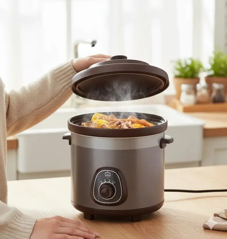Pentola per stufato elettrica viola Pentola per zuppe e porridge in ceramica Pentola completamente automatica di grande capacità per uso domestico e commerciale