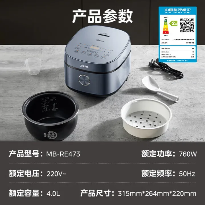 Fornello di riso Midea 4L Silver Diamond Liner Fornello di riso multifunzionale intelligente per uso domestico Grande fornello di riso a potenza di fuoco