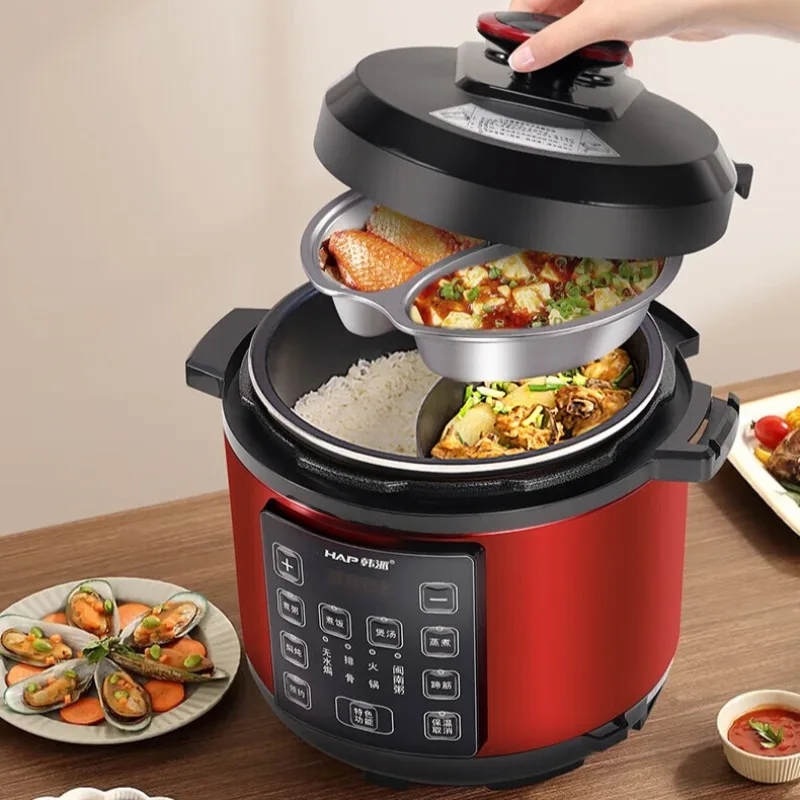Pentola elettrica a pressione a doppio vaso, cuociriso multifunzione intelligente per uso domestico con doppio vaso interno.