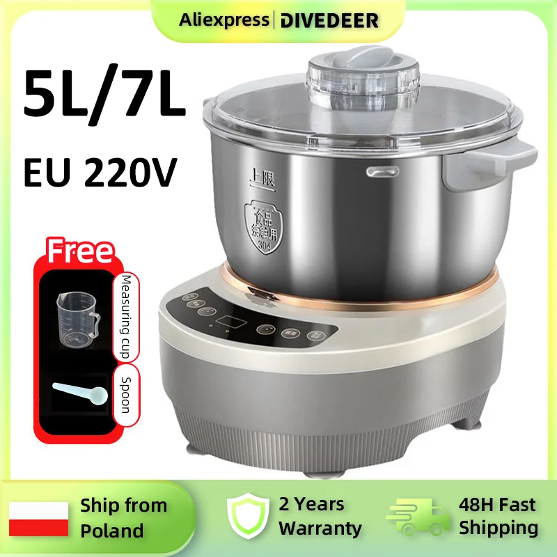 DIVEDEER Impastatrice elettrica Impastatrice Capacità 5L/7L Funzione di fermentazione incorporata 25-38 ° C/77-100 ℉ Impastatrice