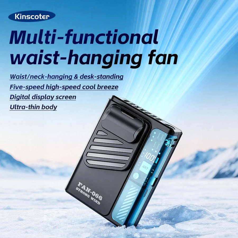 Ventilatore portatile JISULIFE, 5 livelli di vento forte, blocco di sicurezza, batteria da 5000 mAh, display LED, ricaricabile tramite USB, ventilatore personale estivo