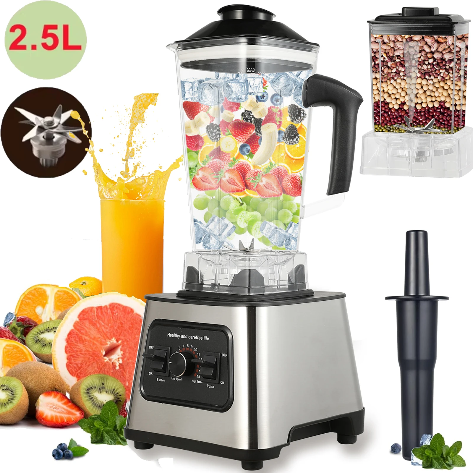 Frullatore professionale multifunzione da 6000 W Potenza 4 lame 2 in 1 Macchina per rompere le pareti Contenitore da 2,5 litri Ghiaccio Dado Mix di frutta Forte