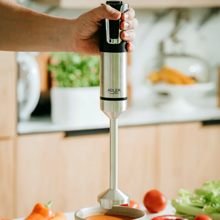 Frullatore manuale da 500 W, acciaio inossidabile a 2 velocità, design elegante in oro bianco, perfetto per mousse e zuppe di panna