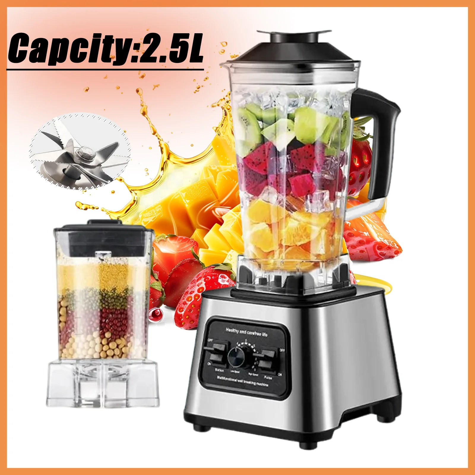 Frullatore potente da 6000 W, spremiagrumi, frullatore, frullatore da tavolo, contenitore da 2,5 litri, robot da cucina, frullatore, per frutta, noci ghiacciate