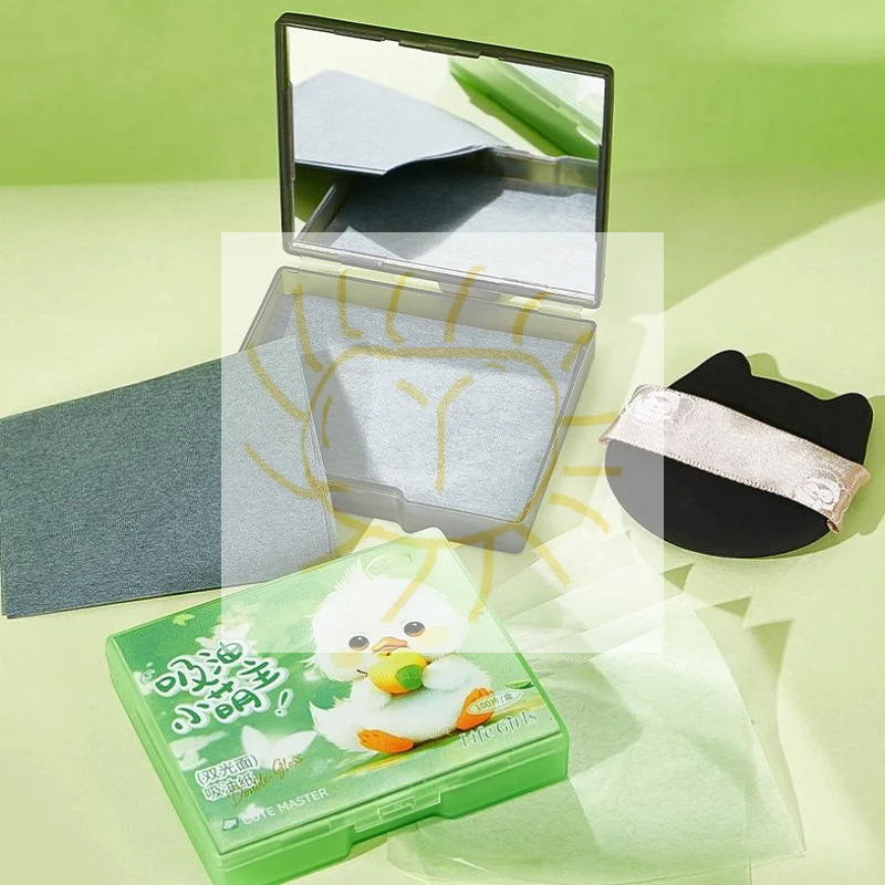 100 fogli di carta assorbente per olio con custodia a specchio soffio di farina cartone animato durevole strumento per il trucco per la pulizia del viso assorbente per olio per il viso