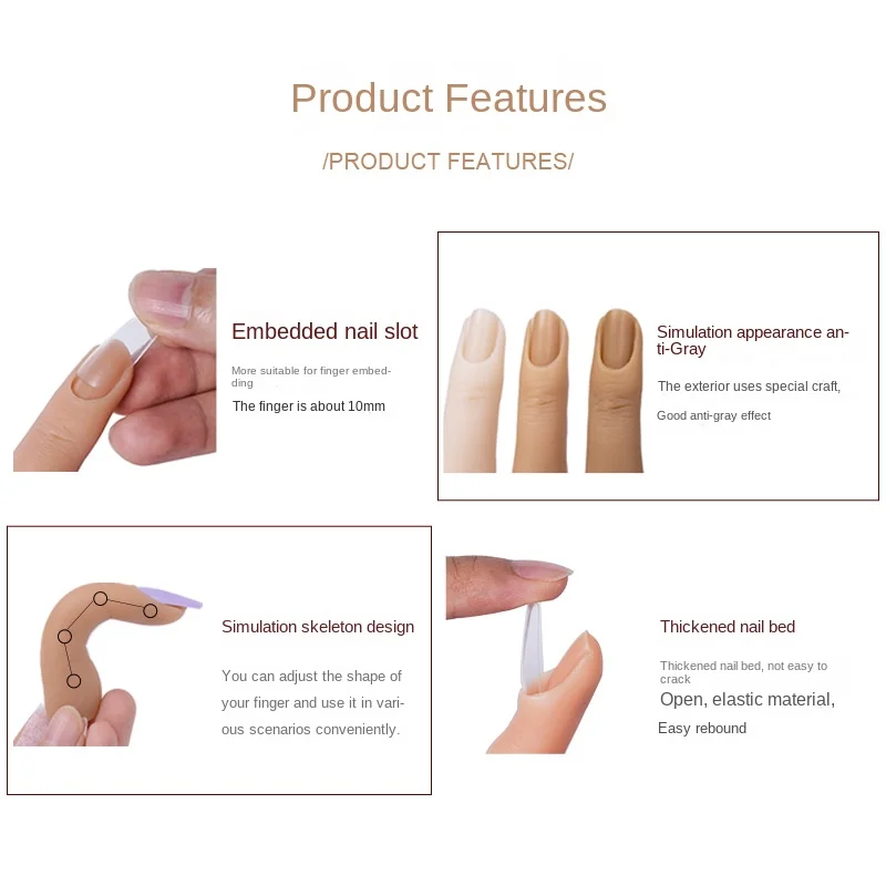 1 pz. Dito finto in silicone per pratica con articolazioni pieghevoli, punte per unghie finte, modello per allenamento unghie, strumenti per manicure e trucco